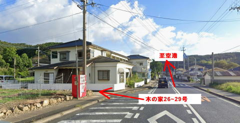 | 美津島町鶏知【木の家12〜25号】の地図 | 鶏知木の家22〜25号、原田石油の真裏です。 | 木の家12〜21号のの屋根にソーラーパネルを取り付けています。 | 鶏知木の家26〜29号入口 |